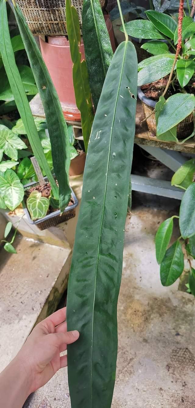 Ez a ritka növény több évtizede a kontyvirágfélék gyűjteményének része volt, levelei már több, mint 1 méter hosszúak voltak. Jelenlegi piaci ára miatt pótolhatatlan veszteség a Kert számára.