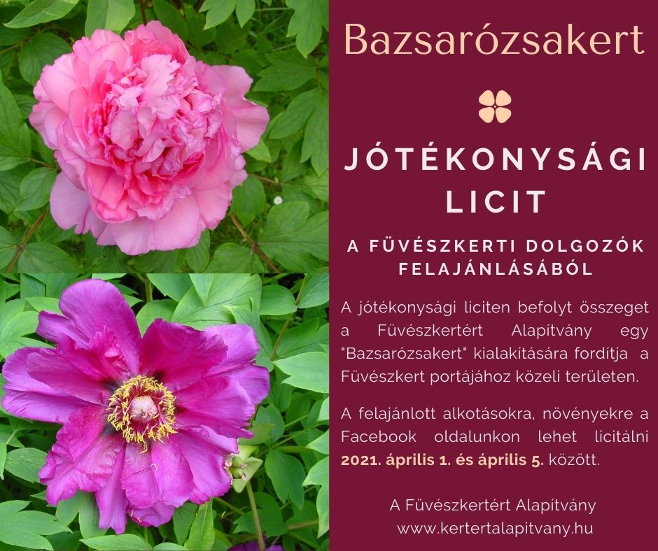Az ELTE Füvészkert szinte egy évig zárva volt a látogatók számára, rendezvényeink elmaradtak, így bevételeink kimaradtak. A Füvészkert dolgozóinak kezdeményezése ez a jótékonysági licit. Saját alkotásaikat, saját növényeiket ajánlották fel, hogy a Füvészkertért Alapítványnak támogatást gyűjtsenek, hogy a korábban betervezett növényültetési munkák, mint ez a Bazsarózsakert, ne maradjanak el a járvány miatt.