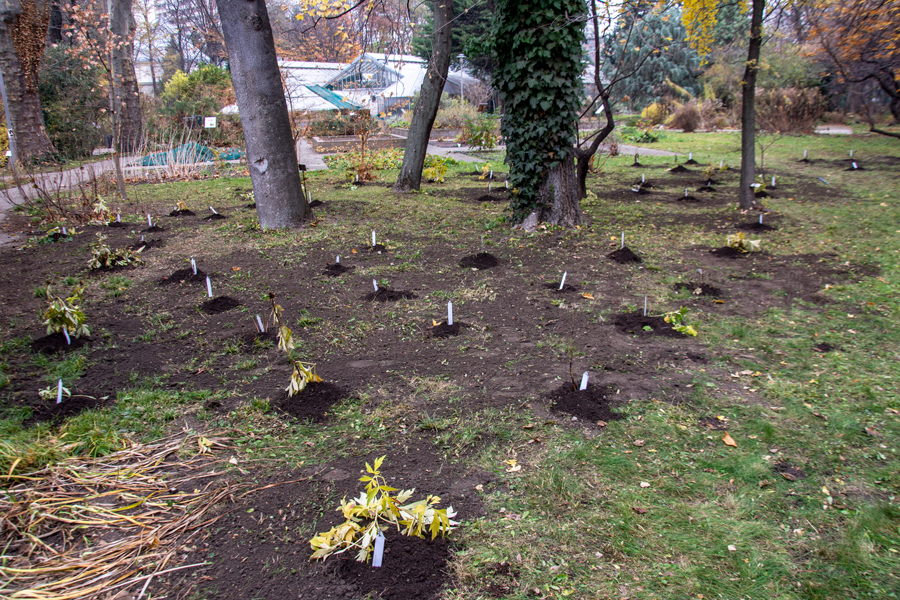 Fás bazsarózsa fajták (Paeonia suffruticosa) kerültek beültetésre. Várjuk tavasszal a látogatókat, hogy megcsodálják a bazsarózsakertet.