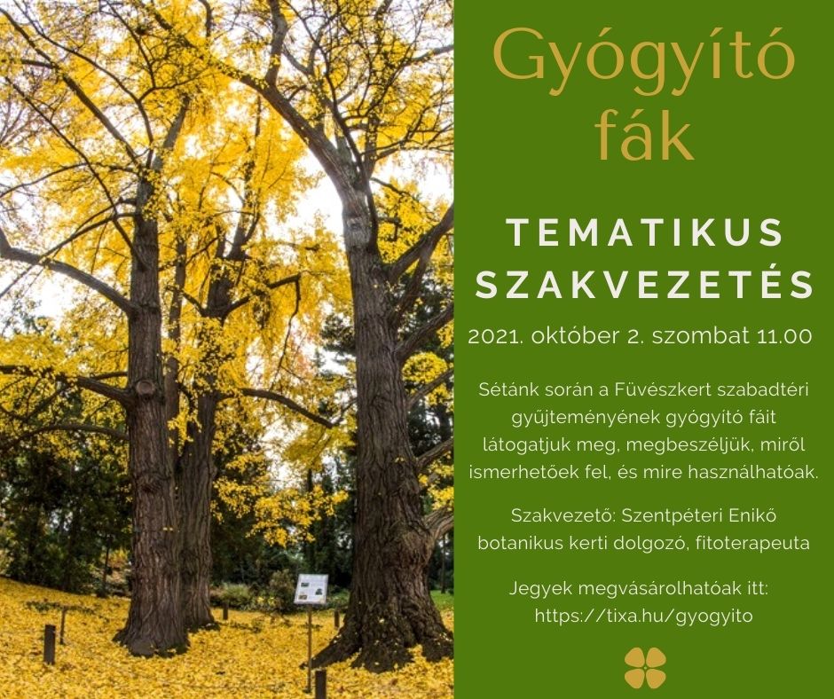Ha meghalljuk azt a szót: gyógynövény, legtöbbünknek lágyszárú, vagy kisebb méretű növények jutnak először eszébe, mint például a levendula vagy a körömvirág. Pedig nagyon érdekes belegondolni, hogy a hozzájuk képest óriásira növő fák között is – melyek alatt akár nap, mint nap sétálunk – mennyi olyan van, amely bír valamilyen gyógyhatással. Sétánk során a Füvészkert szabadtéri gyűjteményének gyógyító fáit látogatjuk meg, megbeszéljük, miről ismerhetőek fel, és mire használhatóak.