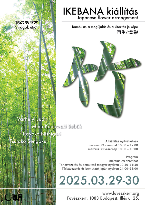 The unforgettable sound of a breeze blowing through a bamboo forest is especially calming – one hears the leaves whispering, and the hesitant “clack” of stalks gently knocking together. After enjoying the ikebana exhibition, we encourage you to take time to stroll through the bamboo grove at Füvészkert and listen.