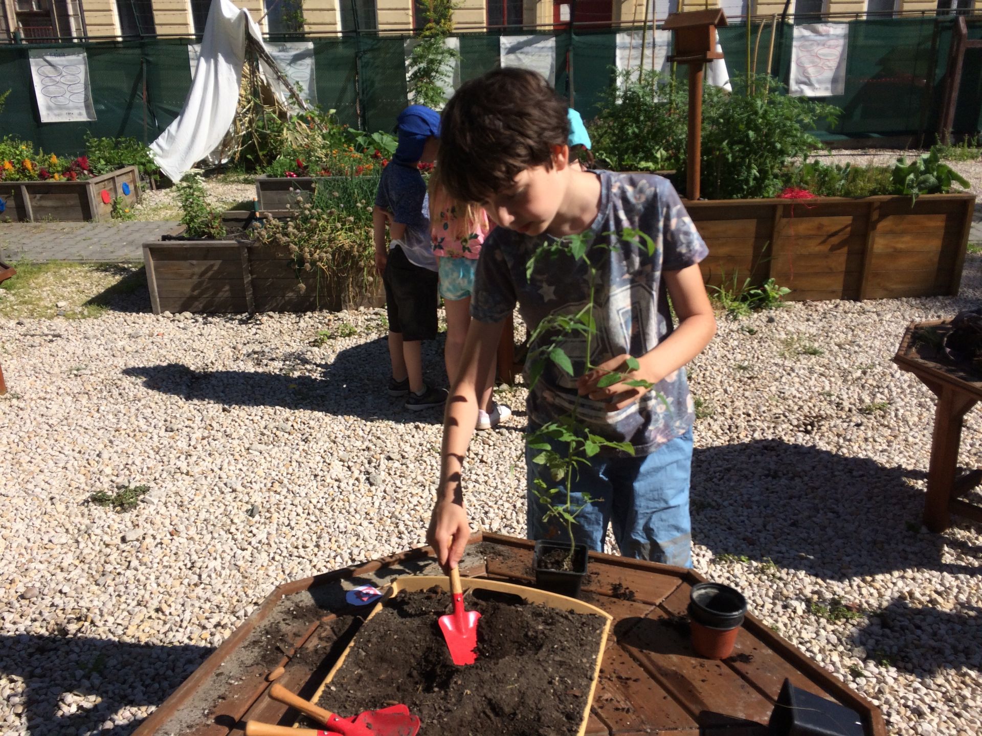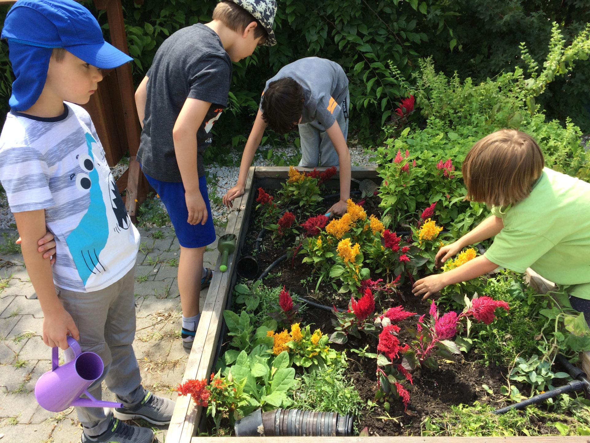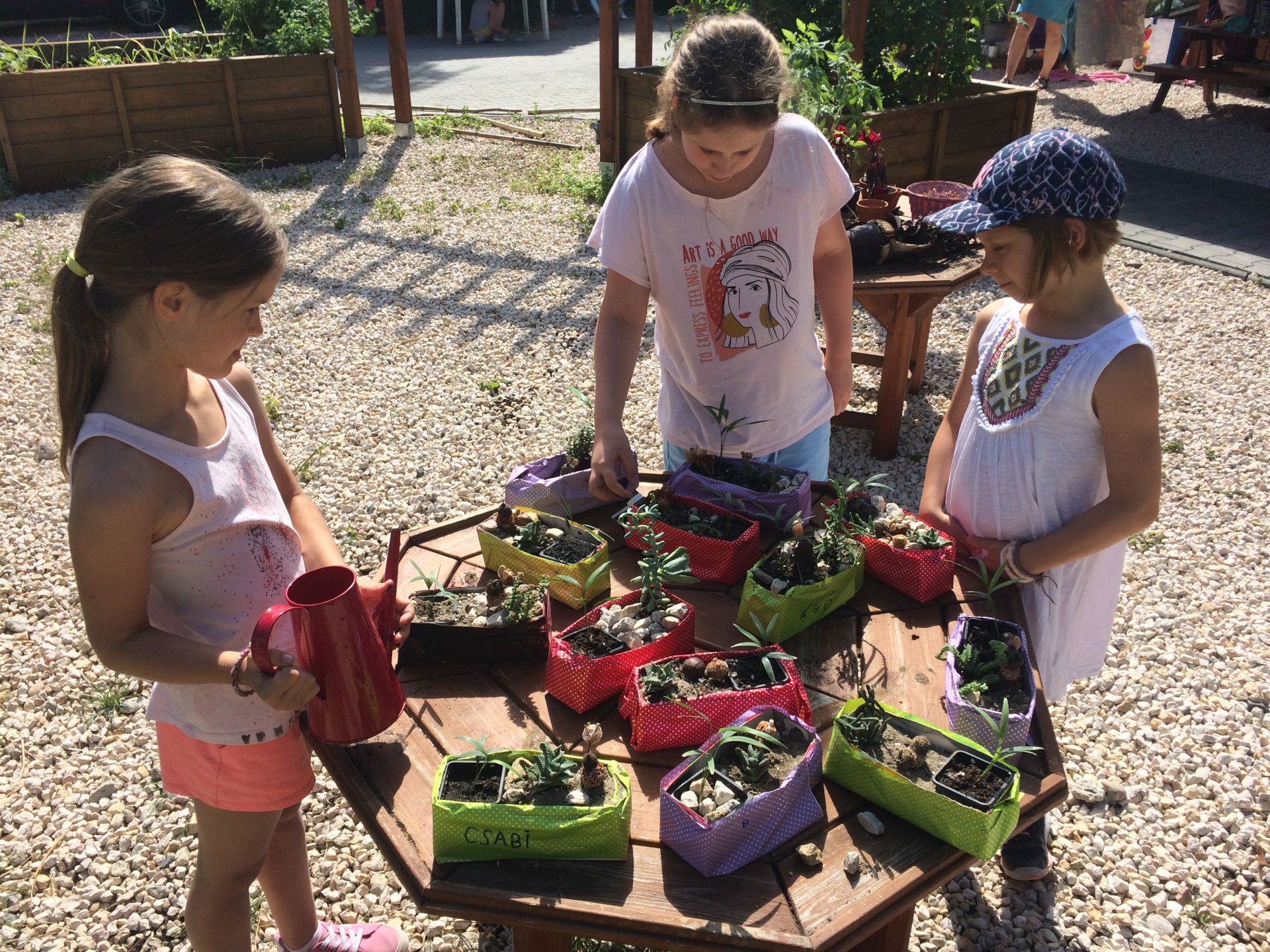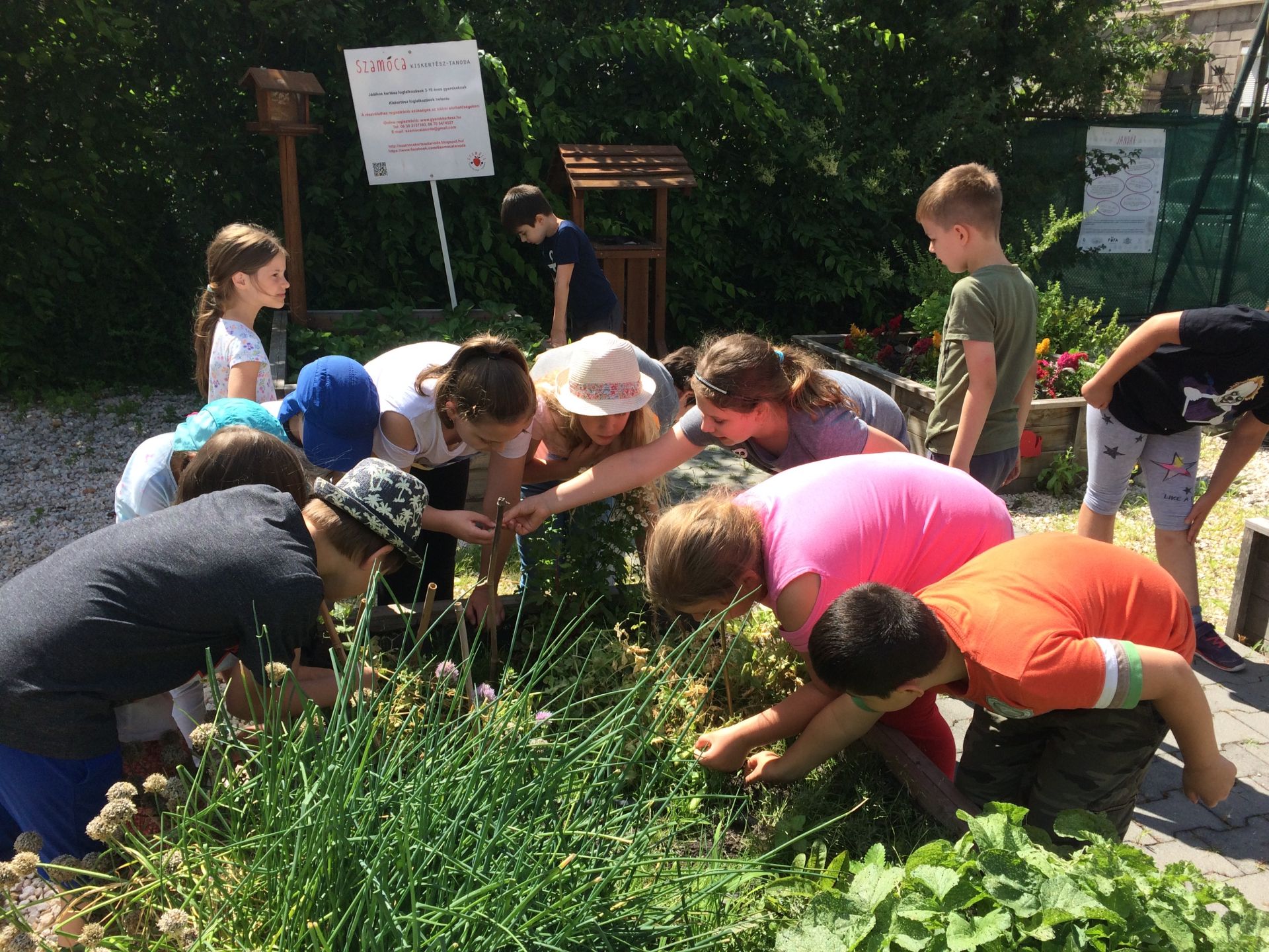 Minden gyerek egy kiskertész oklevéllel is gazdagodott, mert a sok játék mellett részt vettek az ágyásokban levő növények gondozásában is: ültettek, gyomláltak, locsoltak.