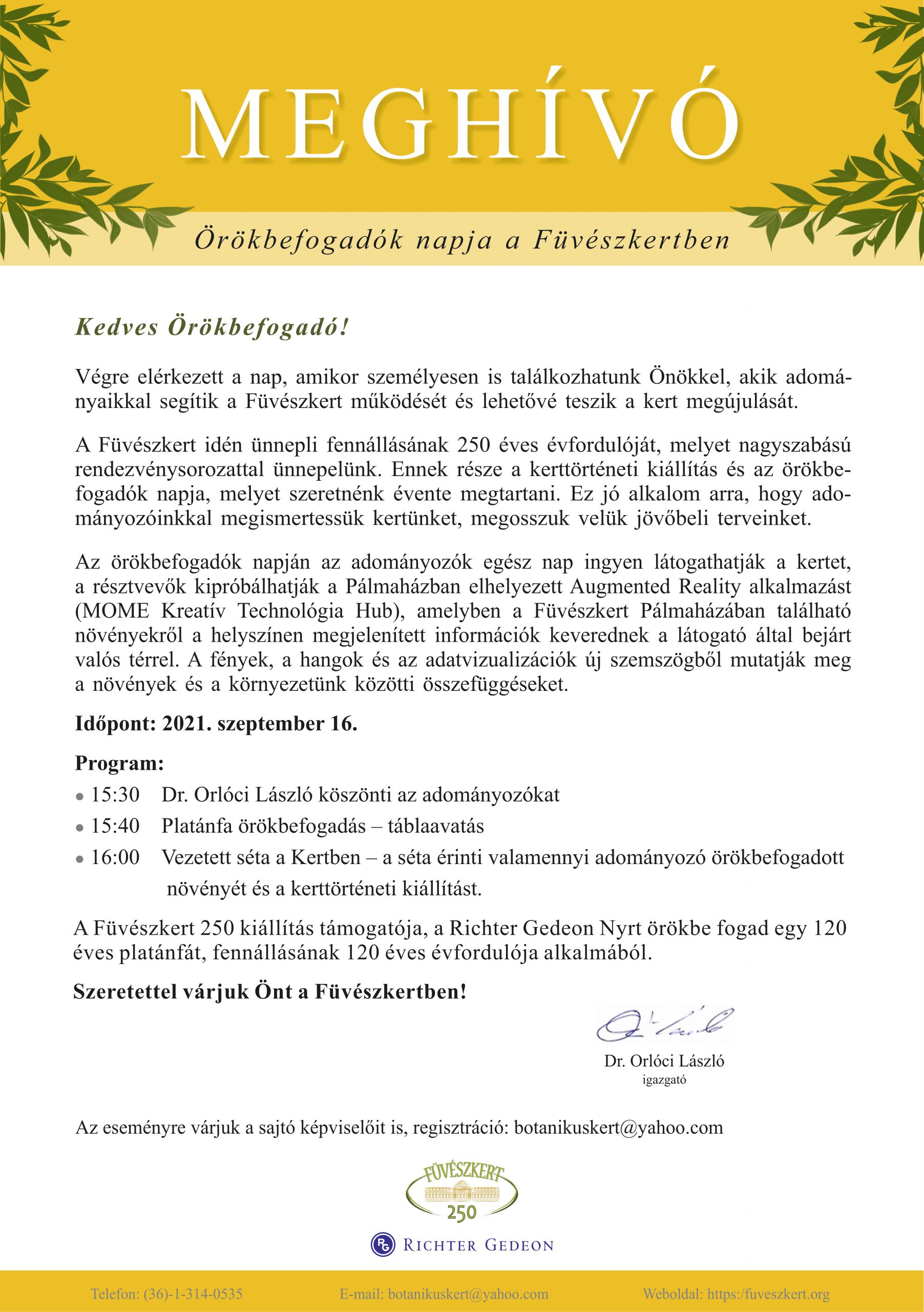 2021. szeptember 16.-án az örökbefogadók egész nap ingyen látogathatják a kertet, és részt vehetnek egy vezetett sétán, mely érinti valamennyi adományozó örökbefogadott növényét.