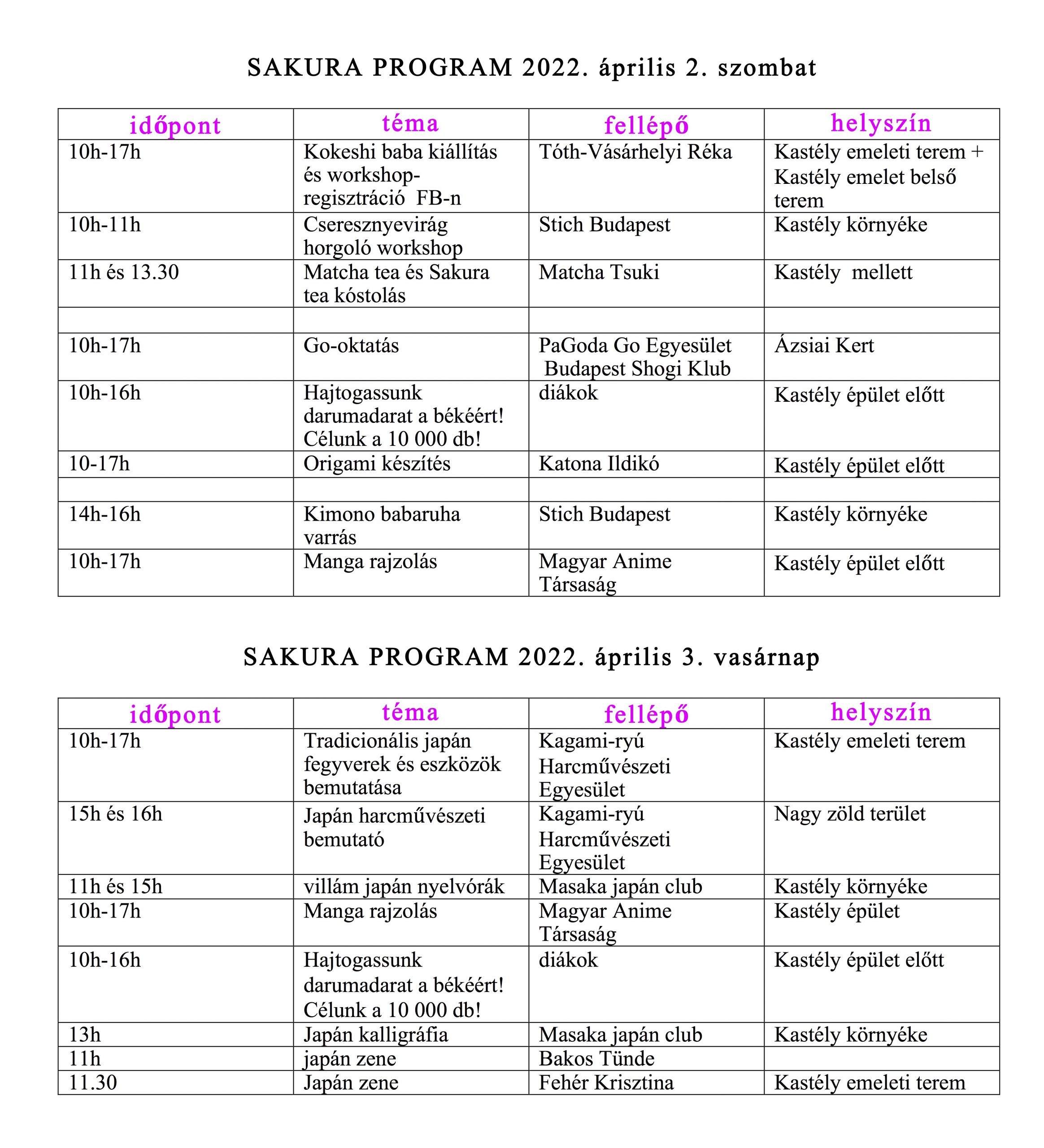 SAKURA PROGRAM 2022. ÁPRILIS 10. VASÁRNAP
