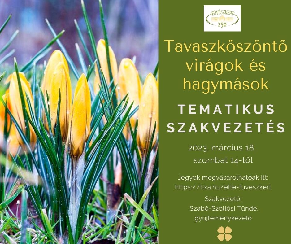 Ismerje meg a tavaszköszöntő virágok és hagymás növények izgalmas világát, tegyen egy sétát a Füvészkert gyűjteményeiben Szabó-Szöllösi Tünde szakértő segítségével. Megtudhatja, hogy mit kezdjen az elvirágzott hagymás növényekkel.