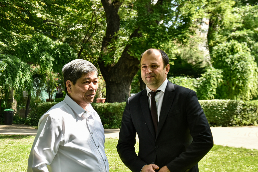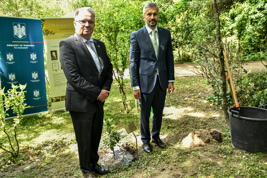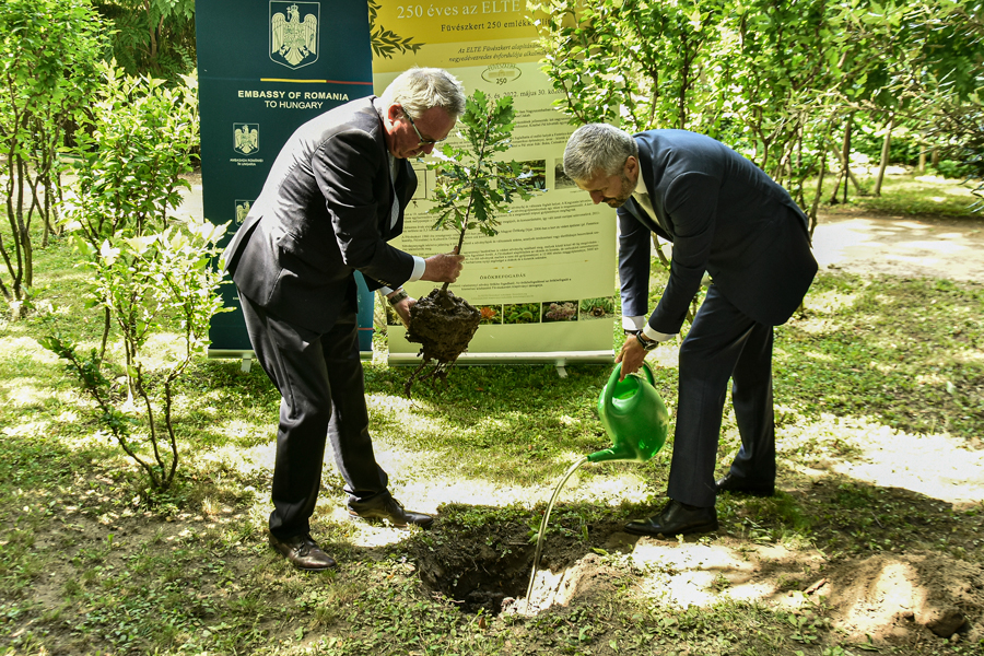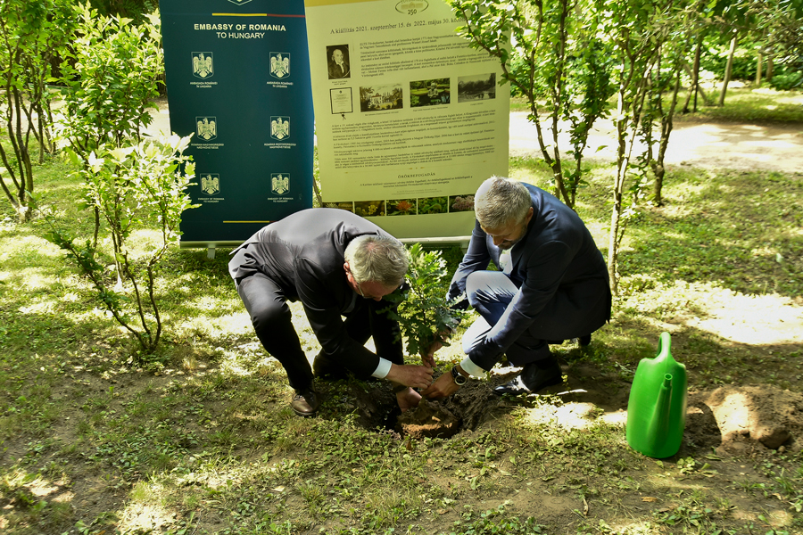 Románia Magyarországi Nagykövete Gabriel Șopandă és Dr. Orlóci László a Füvészkert igazgatója tölgyfát (Quercus robur) ültettek a Füvészkertben, 2024. május 27-én.